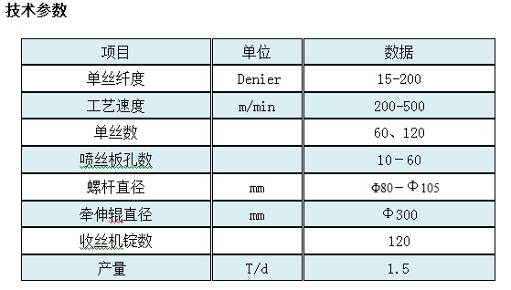 1、用加強型螺桿。 2、單絲機產品紡絲箱中熔體停留時間短。 3、采用大板面噴絲板、大流量高壓紡絲泵。 4、單絲機獨特水浴冷卻設備使絲束獲得取向度低,無結晶結構、拉伸性能良好的初生絲。 5、單絲機高效的接收機,降低設備投資成本。